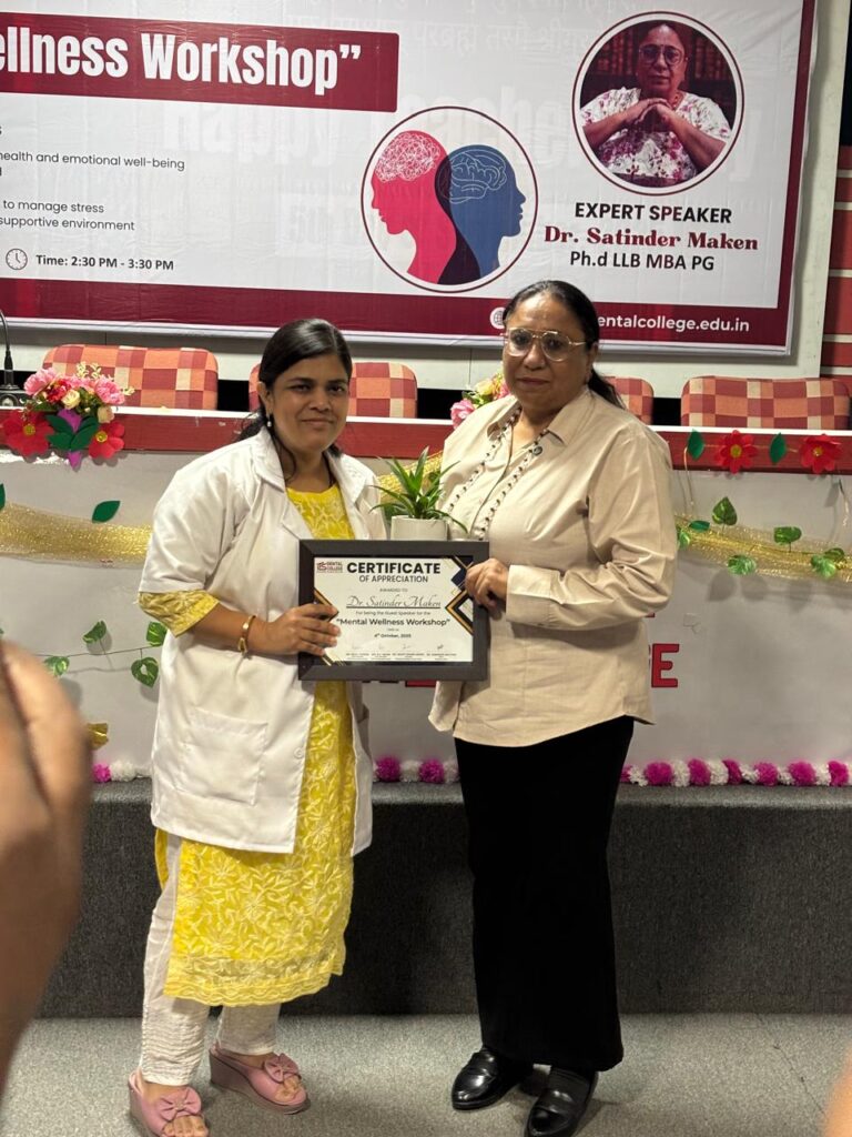 The dignitaries also presented a Certificate of Appreciation to Dr. Maken, acknowledging her meaningful contribution to student mental health and holistic education.